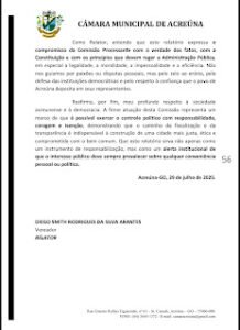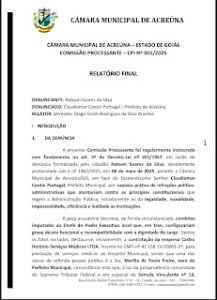 Comissão Processante de Acreúna Aponta Nepotismo, Favorecimento e Contrato Bilionário com Empresa da Nora do Prefeito