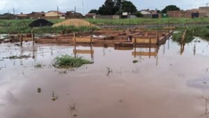 “A fundação está sendo feita de alvenaria de tijolo de barro. Com chuva e infiltração, isso pode ceder. O correto seria fazer viga baldrame, com canaleta e estrutura adequada. Do jeito que está, não é fundação. Essa estrutura não suporta laje e não tem resistência para garantir segurança a longo prazo”, explicou Marcelo Marques.