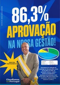 Claudiomar Portugal anuncia 86,3% de aprovação com dados questionáveis e sem dividir palco com Adelio Prado. Empresa contratada está inapta por omissão fiscal.